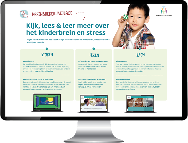 Ben je op zoek naar meer verdieping bij de antwoorden van deze Breinbreker Quiz? Augeo Foundation heeft heel veel handige materialen over het kinderbrein, stress en trauma. Bekijk de interactieve pdf en maak er gebruik van!